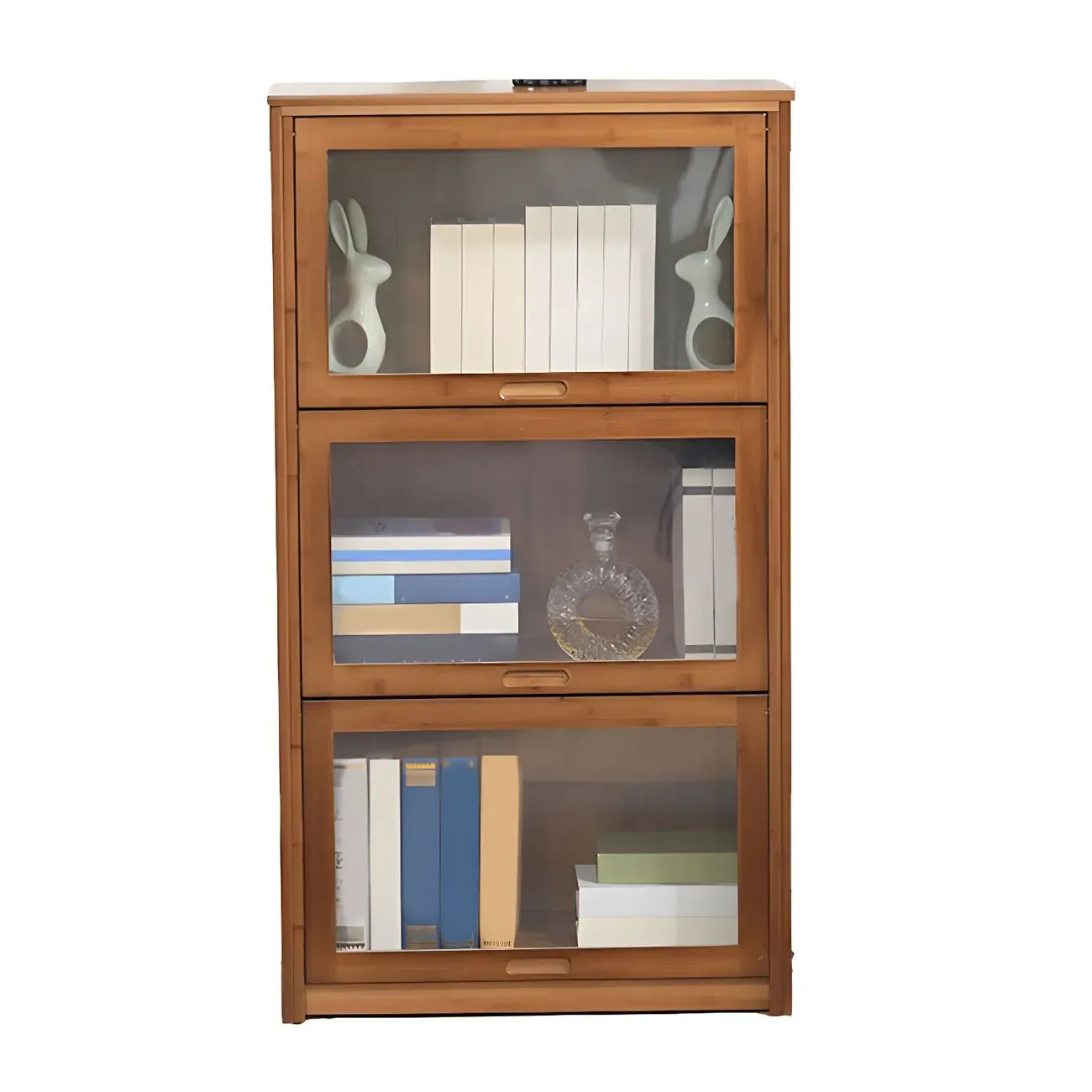 Vitrine réglable en bambou brun avec porte en verre