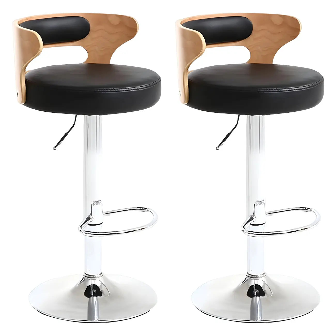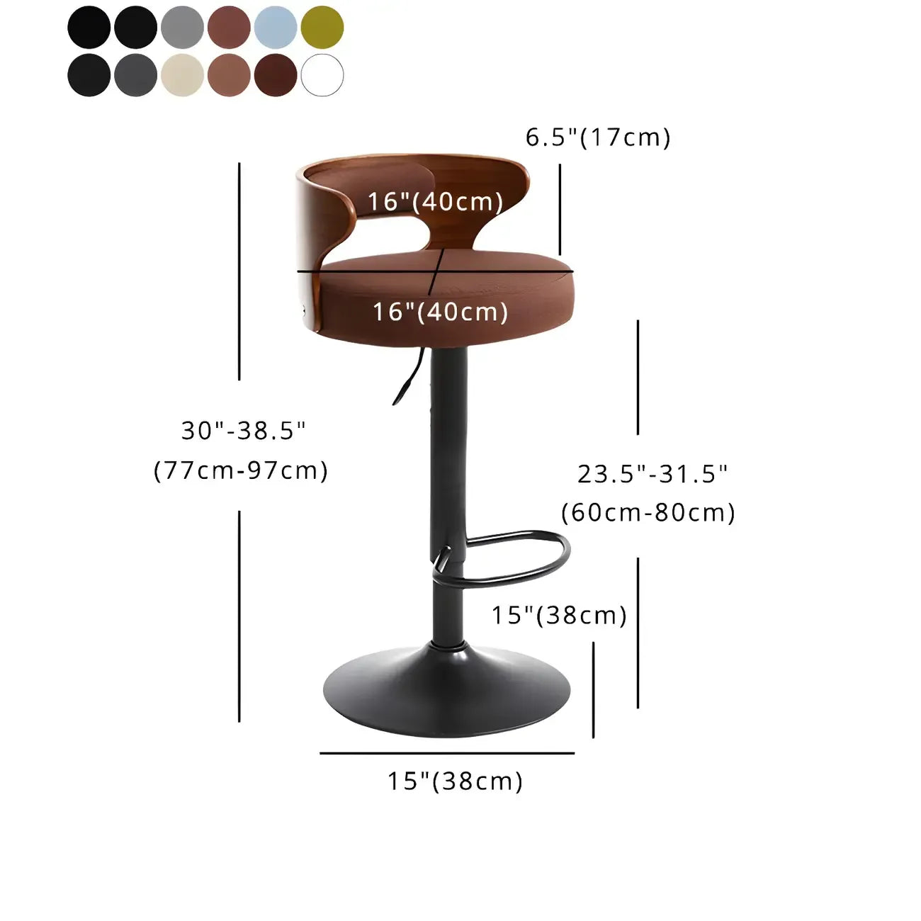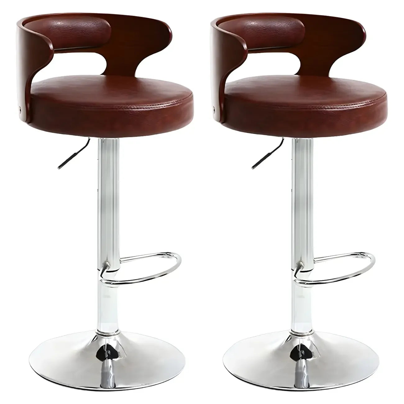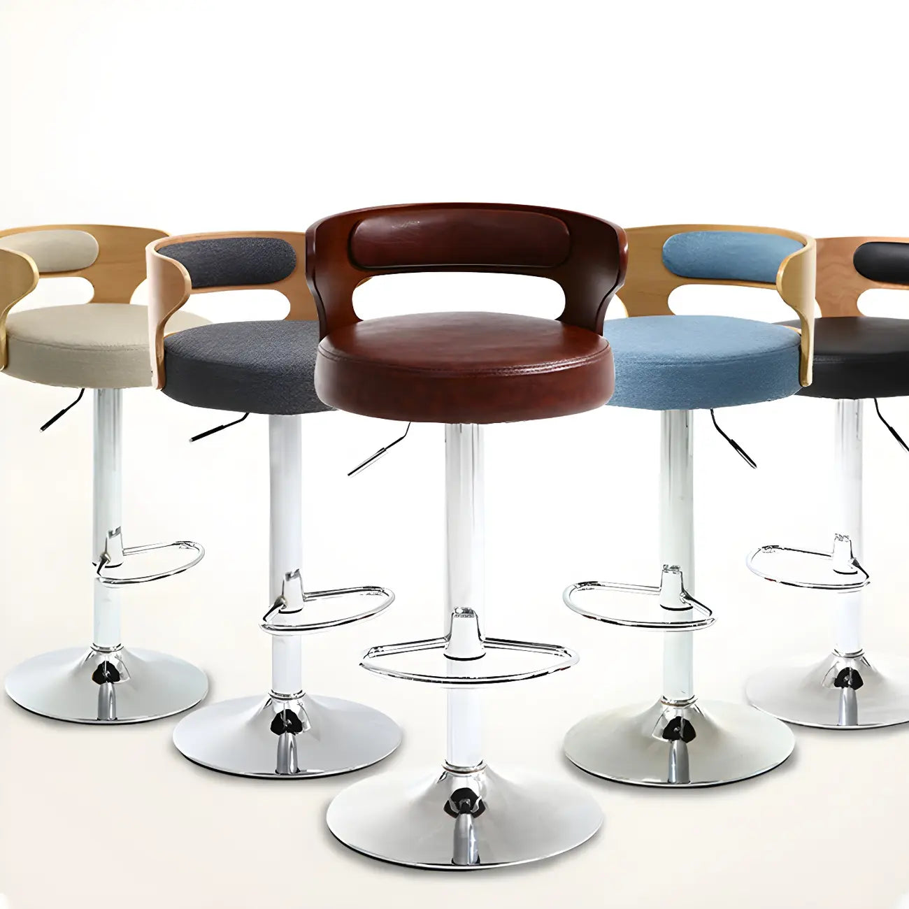 Tabourets de bar pivotants ronds en cuir réglables avec dossier
