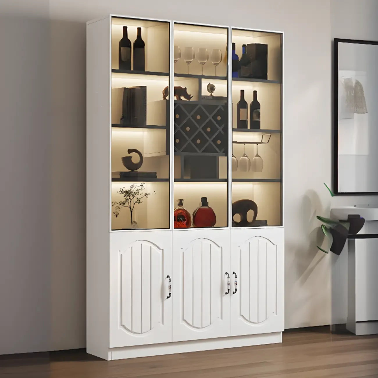 Vitrine en bois noir avec porte vitrée et rangement pour vin