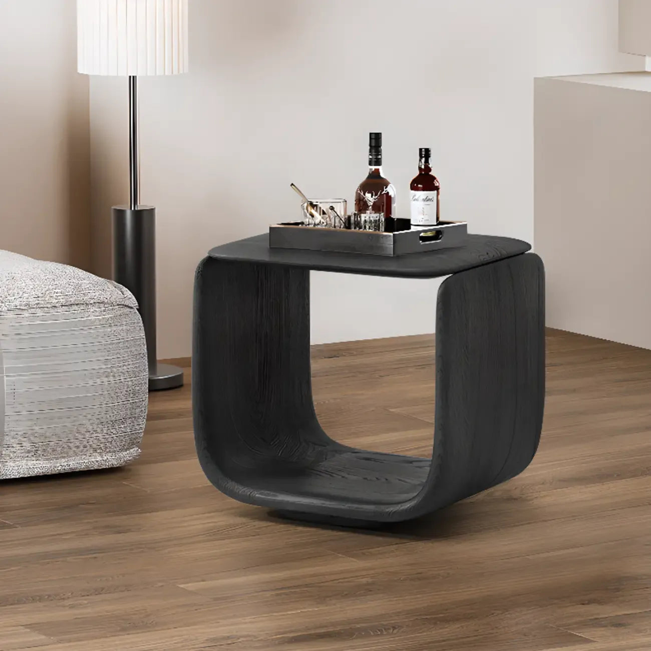 Table d'appoint contemporaine élégante en bois noir avec rangement ouvert