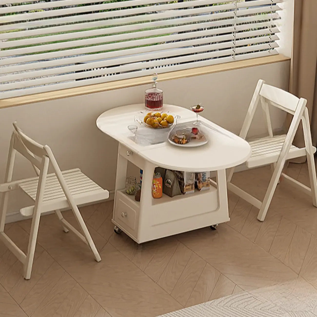 Petite table d'appoint pliable en bois blanc moderne à roulettes