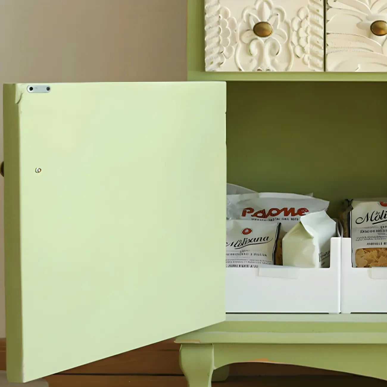 vaisselier en bois vert style campagne française avec rangement