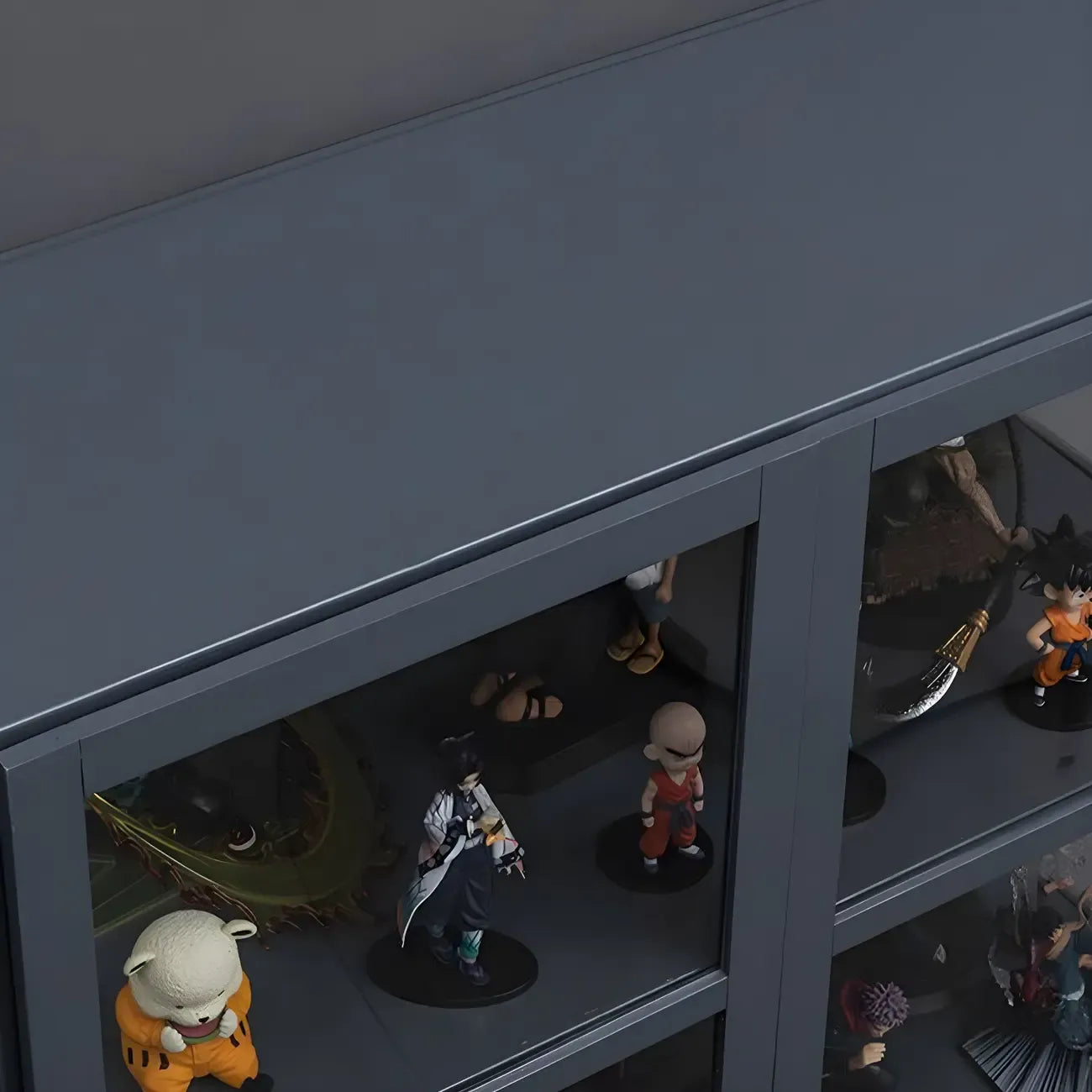 Étagère en bambou gris, vitrine avec porte en acrylique