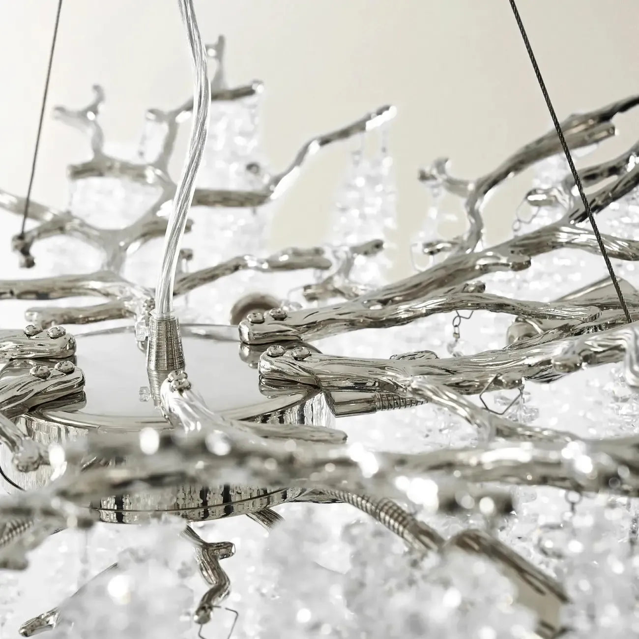 Lustre moderne à six lumières en cristal et perles, style branches