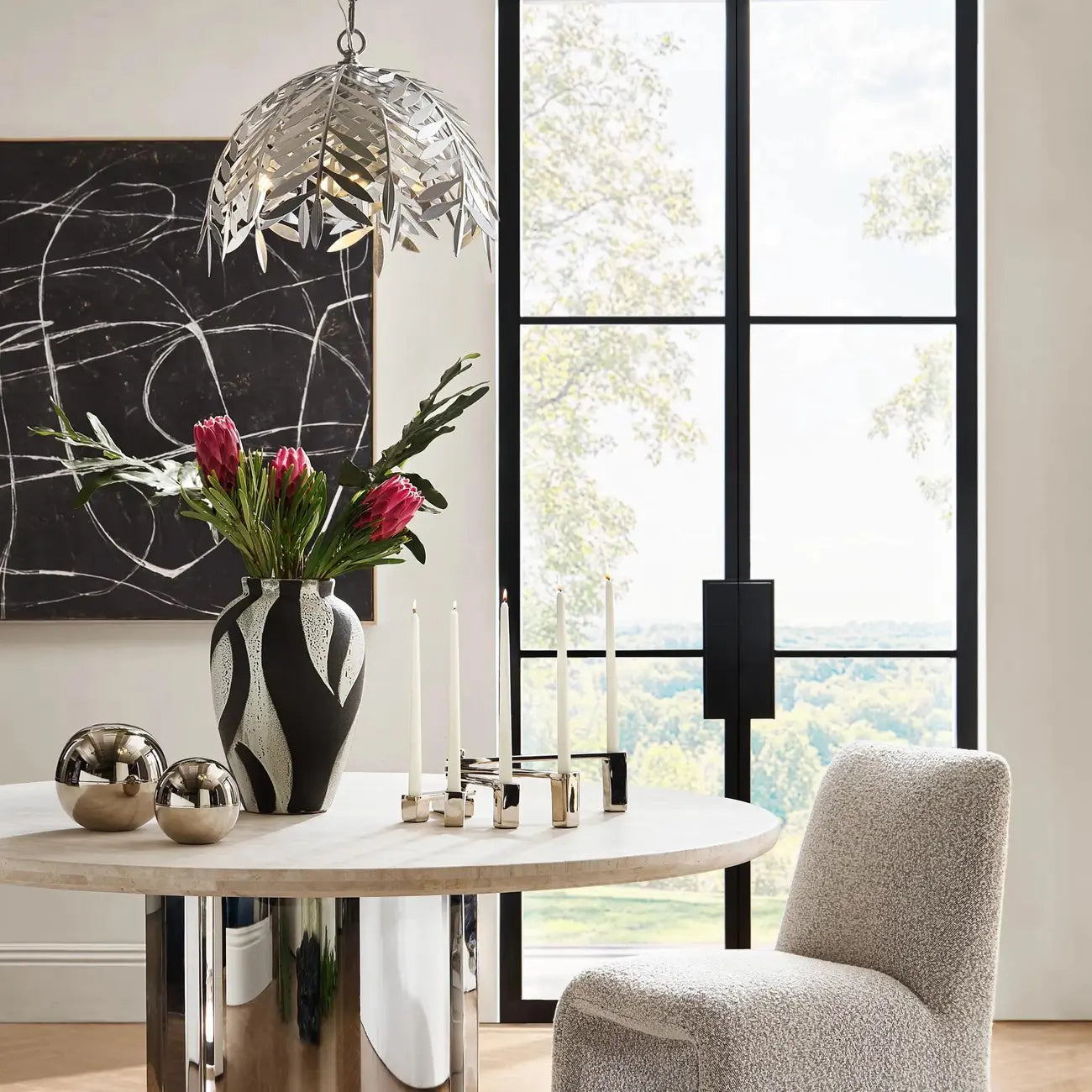 Suspension moderne en métal argenté en forme de feuille