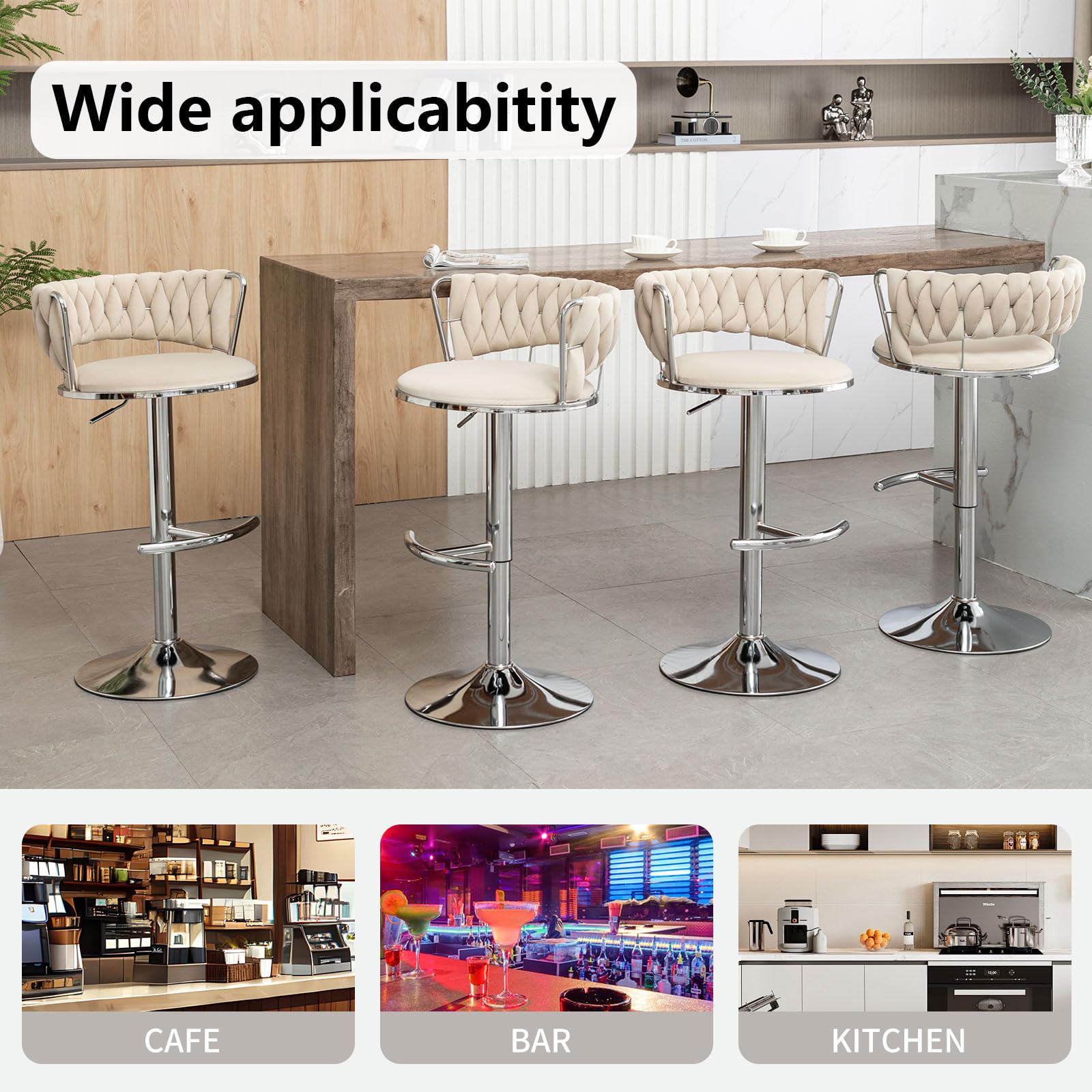Grâce à sa conception polyvalente, le tabouret de bar s'intègre parfaitement dans les salles à manger, les salons ou les chambres.