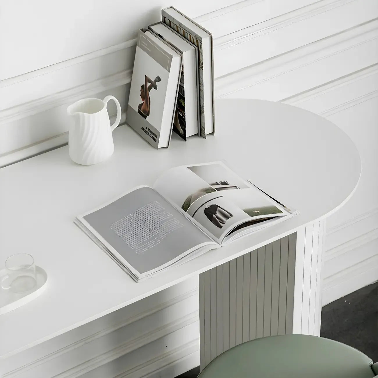 Tables de bar modernes blanches à double piétement en bois de forme libre