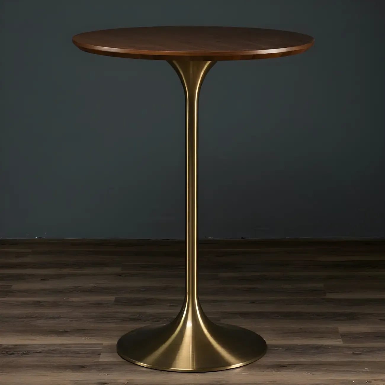 Tables de bar rondes glamour en métal brun doré avec piètement tulipe