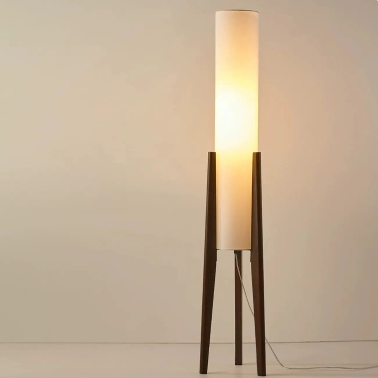Lampadaire torche vintage en bois avec LED et abat-jour en tissu